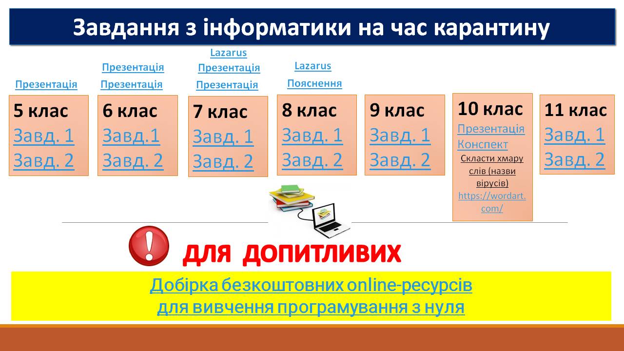Дистанційне навчання з інформатики для 5-11 класів на період карантину (до 30 квітня)