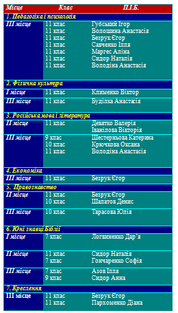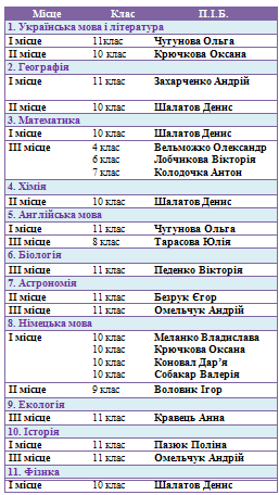 Вітаємо наших гімназистів - переможців ІІ (районного) етапу міжрегіональних і обласних учнівських олімпіад з навчальних дисциплін у 2014-2015 н.р.