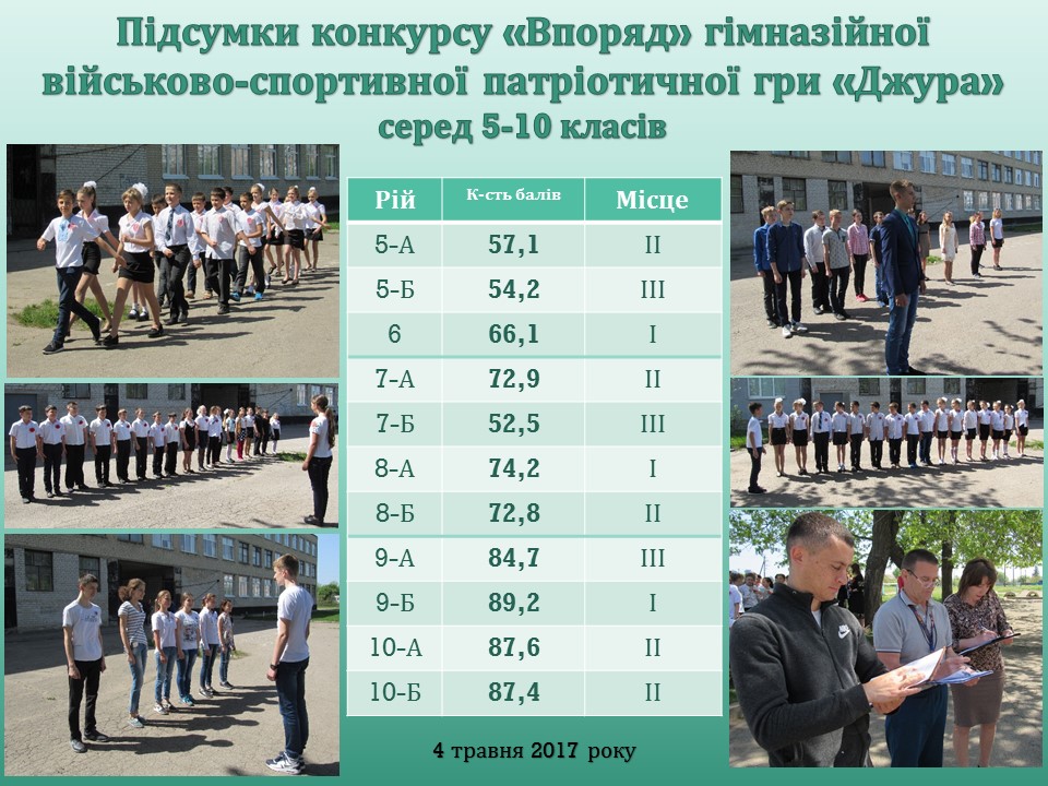 З 27 по 30 квітня туристичний гурток гімназії провів виїзні навчально-тренувальні збори в м.Василівка на т/б «Лиса гора». Під керівництвом керівника гуртка Рогатіної Я.О. та вчителя фізичної культури Негрея В.Г. до наметового містечка відправились 10 учнів гуртка, які впродовж чотирьох днів тренувались з техніки пішохідного туризму на «Смузі перешкод» та в конкурсі «Перенос потерпілого», в’язали на швидкість туристські вузли та слідкували за своїм побутом. Відпрацьовувати тактику команди на всіх етапах допомагав методист обласного Центру туризму Брус М.Д.
