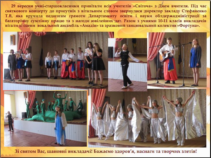 Вже протягом 15 років гімназисти, відзначаючи день народження «Світоча», вирушають у традиційний похід «Веселі іменини світочанської родини». Цього разу, хоч погодні умови були і не дуже сприятливі, проте 28 вересня учні 5-11 класів з гарним настроєм і рюкзаками за спинами вирушили запланованим шляхом.