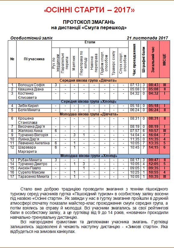 Змагання з техніки пішохідного туризму серед учасників гуртка «Пішохідний туризм»