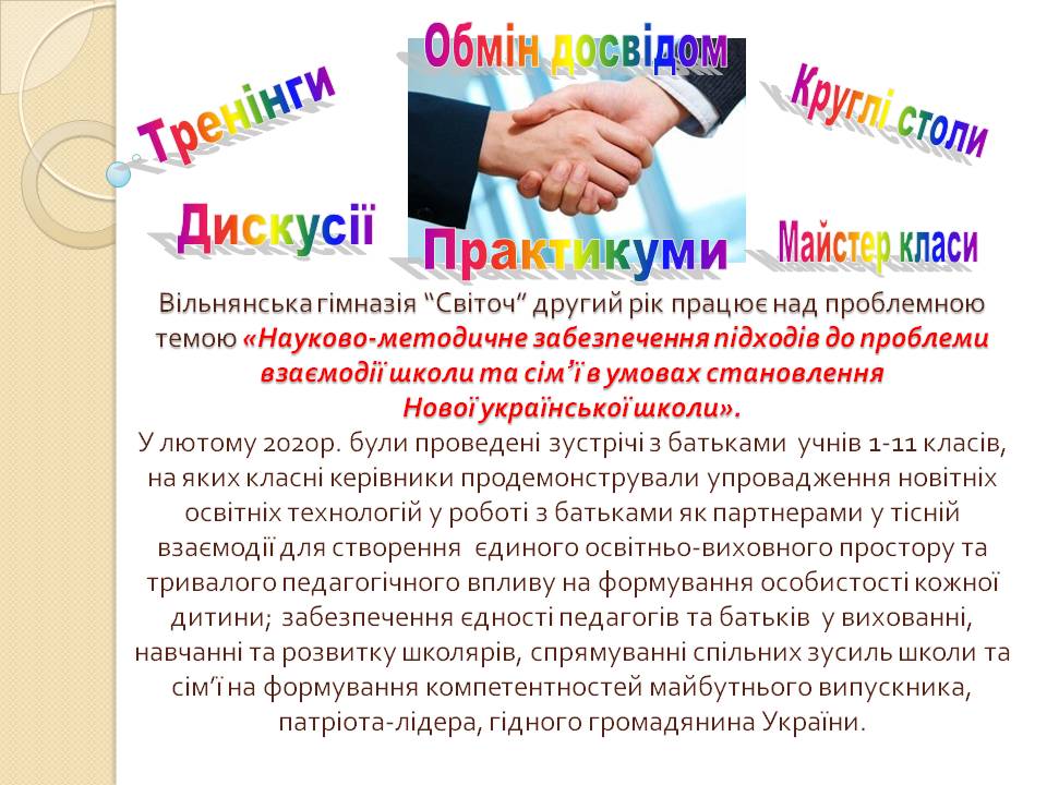 Взаємодія школи та сім'ї в умовах становлення НУШ