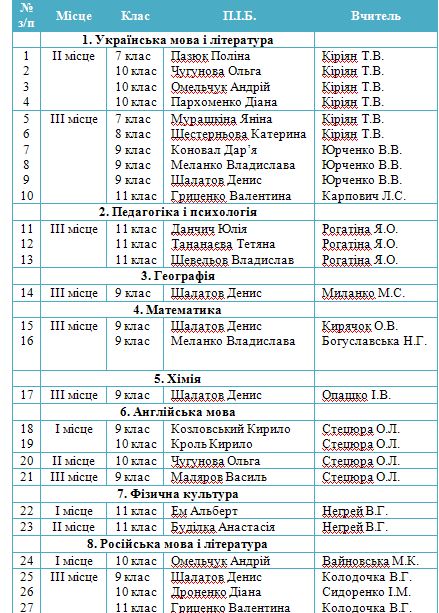 тих, хто добре навчався, брав участь в олімпіадах різних рівнів, в