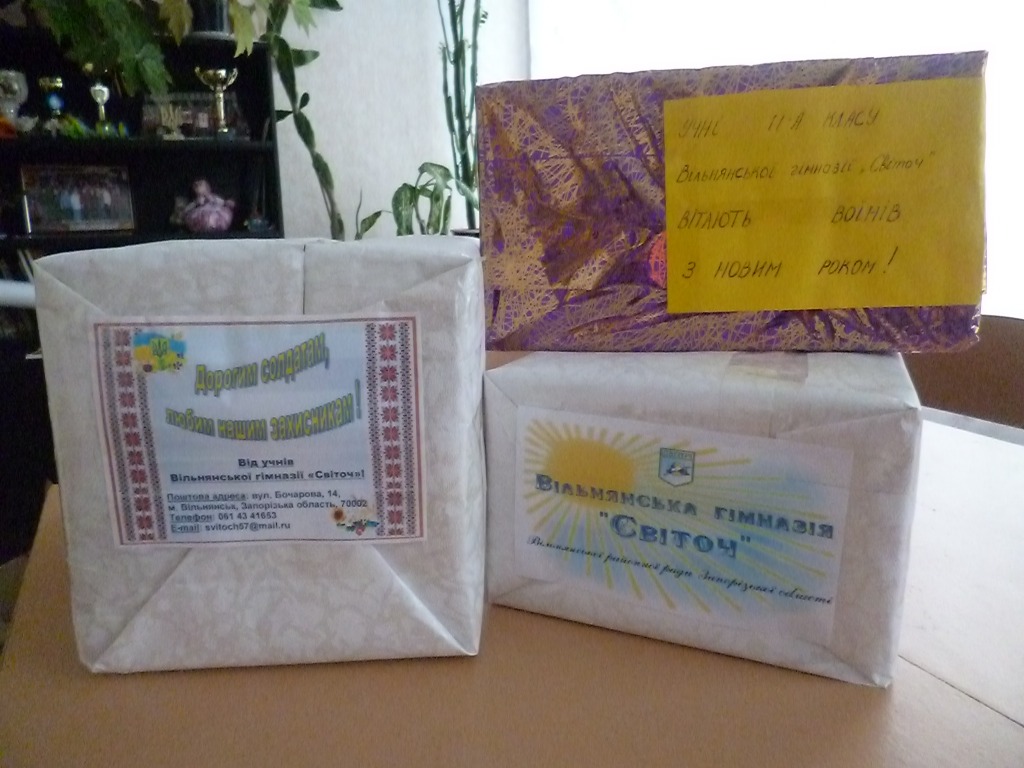 Уже 3 грудня учні 11-А класу зібрали всі подарунки, аби розсортувати їх та відвезти до Запорізького обласного центру художньо-естетичного виховання, звідки увесь цей новорічний вантаж поїде до українських воїнів.