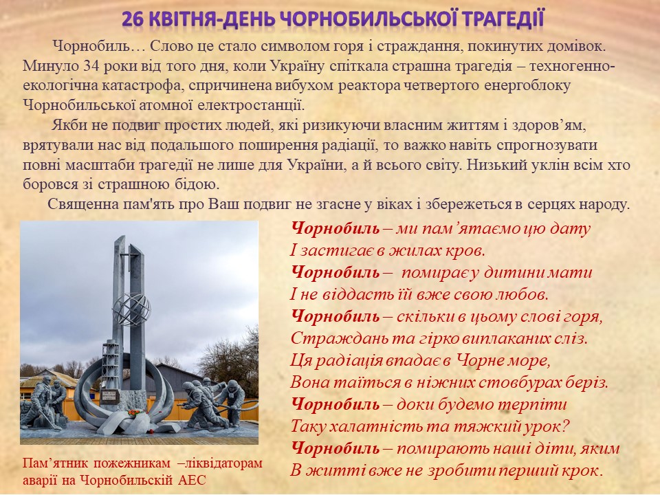 Чорнобиль - ми пам'ятаємо цю дату ...