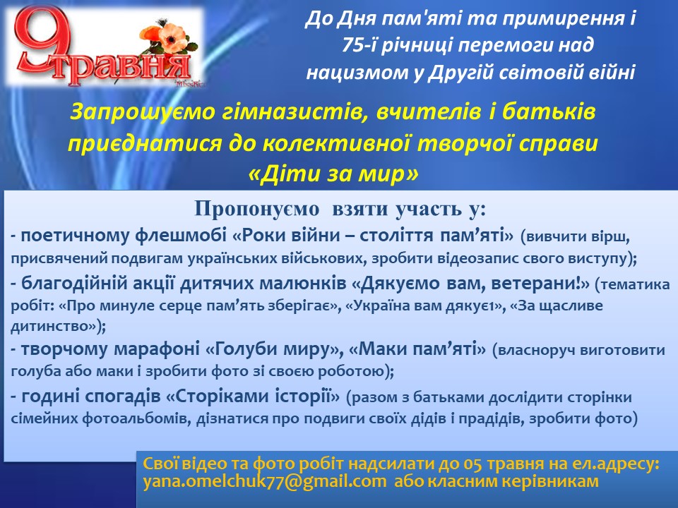 Запрошення до участі у колективній творчій справі "Діти за мир"